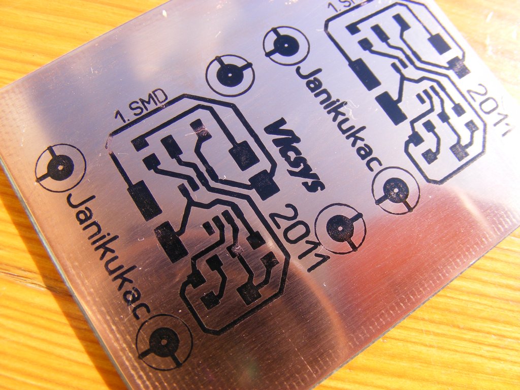 lézernyomtatóval (mesterfilm) 25ft/ A/4 tehát ha egy 5*5cm es nyákot készítek akkor sem túl nagy a költség, és ez is azonnal használható .