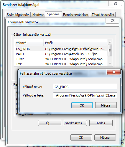 Ez most Win7-s, de ha XP-t használsz az sem nagyon más. A lényeg ugyan az. 1. Vezérlőpult -> Rendszer 2. Speciális rendszerbeállítások 3. "Rendszer Tulajdonságai" ablak, "Speciális" fül. Alul Környezeti változók. -> Kép1 4. Itt eldöntheted, hogy csak a Te felhasználó fiókodból legyen elérhető vagy mindenhonnan. Ha még nincs meghatározva a változó, akkor létre hozod és beírod amit kell. -> Kép2 5. Nálam így néz ki. -> kép3 Remélem világos voltam. Üdv, Pluto