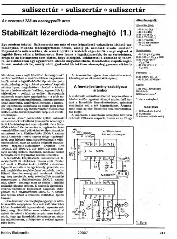 Ha van a lézerdióda mellett monitordióda is,akkor ez a kapcsolás jól jöhet,ennek alapfeltétele,hogy antiparalell bekötésű legyen az LD ás a PD! Gondolom,adatlapot adtak a diódád mellé....