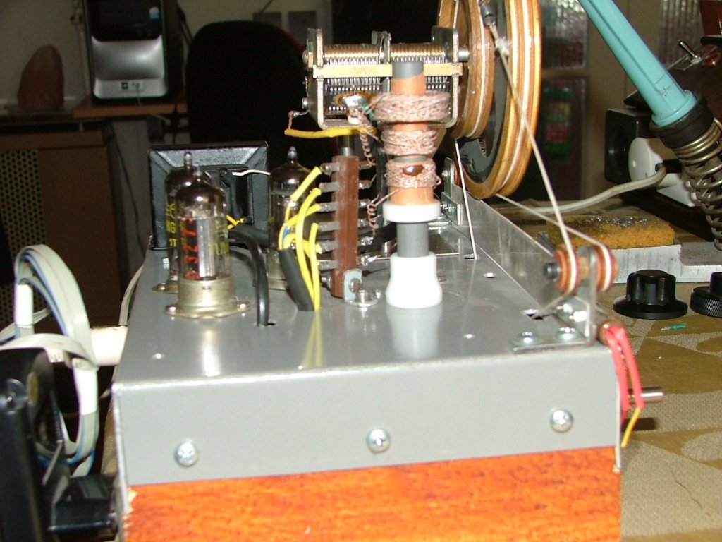 Szeretném bemutatni az általam "elkövetett" három csöves telepes készüléket.Az elkövetésben társtettesként közreműködött Sz-ferkó aki a kapcsolási rajzot adta, az anódpótlót megalkotta és rendelkezésemre bocsájtotta. Első ütemben kétcsövesként készült és mivel a vételkészsége gyenge volt, ezért be építettem egy harmadik csövet is.Nem sok javulás következet be.Ezután a légmagos tekercsek helyett ferrit magos tekercsek készültek.A vételkészség és szelektivitás sokat javult, de igazán azóta működik jól, miután a visszacsatoló tekercset el lehet csúsztatni a rezgőköri tekercshez viszonyítva és így tökéletesen beállítható a visszacsatolás.Azóta tisztán és jó hangerővel veszi a Kossuth rádiót, ami itt nyíregyházán a jó vételkészség kritériuma,tekintettel a 20 Kw. helyi adóra ami tőllem3-4 km.-re van. Jó vételi lehetőséget kívánok még sokáig a középhullámon.