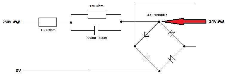 Egy mozgásérzékelőben láttam agy kapcsolást (melléklet) csak az a piros nyíllal jelölt részen 24V váltakozó feszültséget ad. Valaki eltudná mondani, hogy hogyan működik ez a kapcsolás, és hogyan alakíthatom át 12V váltakozó kimenetűre? Én arra gondoltam, hogy az impedancia (kondi és ellenállások) és a diódák nyitóirányú differenciális ellen állása egy osztót alkot, de ez nem biztos.
