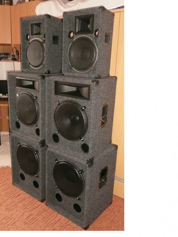 Köszönöm a válaszokat! Mindegyik hangsugárzóban Reflex típusú közép/mély hangszórók vannak. A felsők kisebbik ládák a 12r150 típusút kapták, a középsők a 15r300-ast, az alsó pedig a 15r400-ast. Nem a legjobb hangszórók tudom, de egyenlőre nekem jó. Nem bulizok sehol, csak a magam szórakoztatására vannak.
