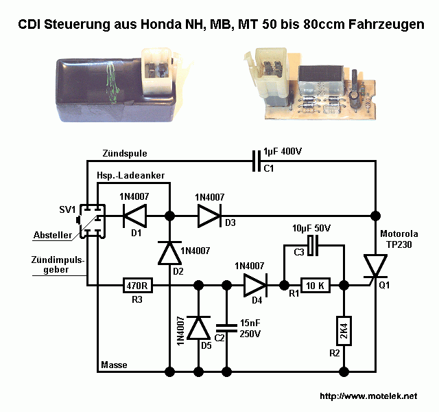 Tönkrement a Honda NS1-es motorom CDI-je, szétszedtem, visszafejtettem csatoltam a képen. Fórumokon javasolják helyette a Honda Dio CDI-ket. Szerintetek jók lehetnek hozzá? illetve láttam itt a fórumon is ilyen egyszerű áramkört, érdemes megépíteni? Üdv. Zoli