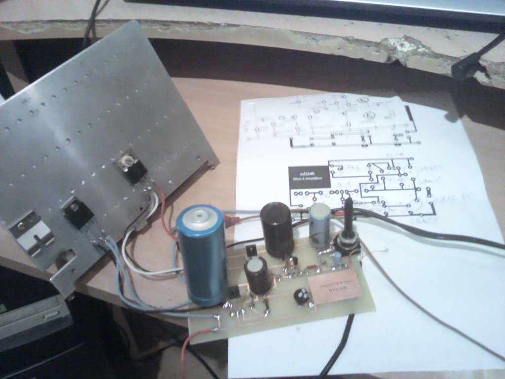 Sziasztok! Én mostanába próbálkozom építeni A osztályú erősítőt. Sikerült is, most van egy problémám. Inkább csatolnám a képet. (A Tranzisztor nem ment tönkre).
