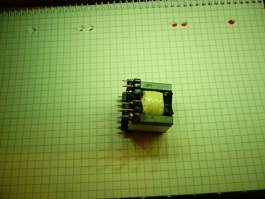 Néztem üresjáratban a fogyasztást. 4W körül volt. Ez természetesen az IR2155 kapcsolás technikájából eredt. A magon nem mértem veszteséget. Nem is kell, mert 0.136T indukció mellett szinte nem is melegedett.