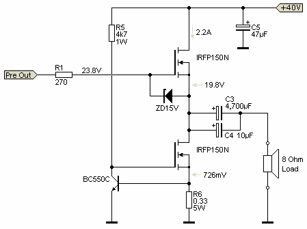 Ez így nem erősítő, kell elé egy feszültség erősítő fokozat (kb10x). Max. teljesítménye 10W körül lesz.