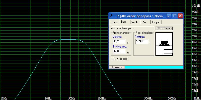 amatőr szinten egy rendes bandpasst megtervezni nagyon nehéz, inkább ezért hessegetek sokakat el tőle. De amit már leírtam az igaz. LASSÚ, ha rendesenki van számolva akkor keskeny a sávszél (a két -3 dBs pontja pl. 25Hz-40Hz) ebben a tartományban 6-10 dB-el hangosabban tud szólni a többi dobozhoz képest. de a többi sávban egy nulla. ezért van az hogy vagy nagyon hangosan hümmög vagy nem szól semmit. pl. vegyük a filmmekből a robbanást. ez egy komplex jelegyüttes mely tartalmaz kb. 20Hz-től 12000Hz-ig mindenféle amplitúdójú jelet. ami a szubra tartozna az a 0-200Hz-ig tartomány. ebből a bandpassok egy igen kis részt tudnak csak felidézni. elvész a anyag.... másrész láttál már autós hangminőség versenyről hangnyomásról pontozott lapot? ott akinek a teljes hangképben +-3dB-től nagyobb eltérés van a norma hangszinttől azt igen keményen lepontozzák. a másik pedig az igények változóak. én nem csinálnék semmilyen bandpass-t mert azt nem lehet beilleszteni a hangképbe sehogysem. Vagy ordít vagy csendben van. olyan zene meg nincs hogy 'jól szóljon' rajta. Hát ez van srácok...