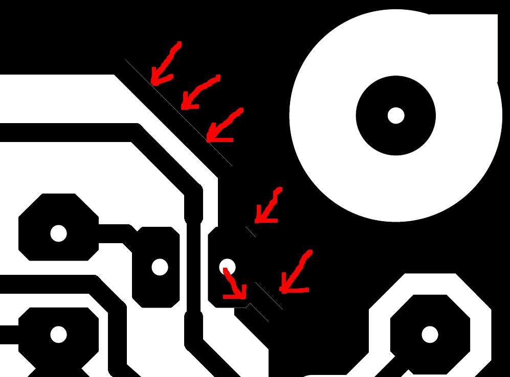 Akadt egy olyan problémám, hogy a SL5-ös az alkatrész oldal nyomtatását elcseszi. A forrszemek megvannak, a teliföld megvan, smd padek megvannak, és megvan a megfelelő kivágás is a teliföldből. De a vezetősávok és területek összevékonyodnak egy alig látható csíkká, és beteríti őket az autognd.
