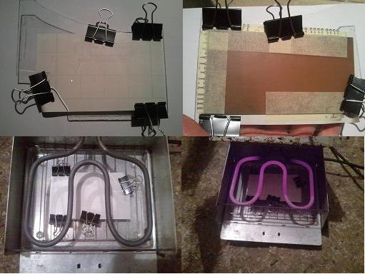 Az elgondolásod jó irányban halad, csak én fordítva csinálnám. Egy vastagabb 8-10 mm vastag sík fémlapot melegítenék megfelelő hőfokra. Arra fektetném a rézfóliás lemezt. Amikor kellően átmelegedett akkor tenném rá a maszkot, valahogy úgy mint a Dry fólia laminálásakor a fóliát és egy nem túl kemény gumihengerrel finoman ráhengerelném. Igaz ez így csak egyoldalas, de kilehetne ötölni, hogyan lehetne kétoldalasra alkalmazni.