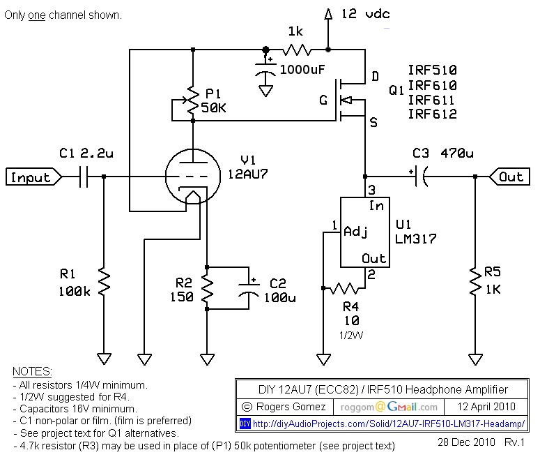 Nem tudom minek sorosan keresztülvezetni a csőfűtést az 1K előtét ellenálláson - azt hiszem csak figyelmetlen volt aki rajzolta. A csőfűtést tedd direkt a 12V-ra. A Fet-re menő 12V-ról pedig ahogyan rajzolták, egy 1K ellenálláson keresztül egy szűrő kondenzátorral simítva kínáld meg a cső anódját.