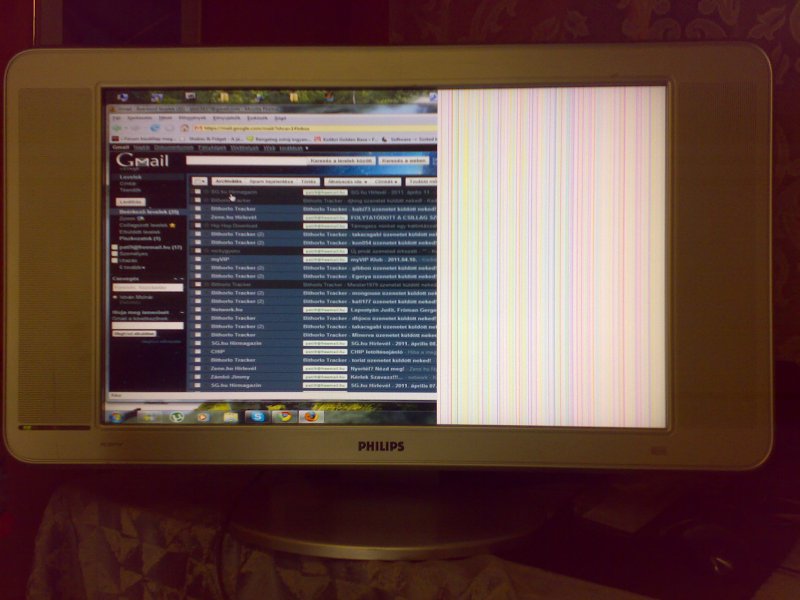 Rákötöttem a TV-ét a PC-re és lefotoztam . Minden müködik amugy , csak mint láthato a képernyö fele fehér és csikos . Hozzáfüzöm hogy néha kimegy belöle az a fehérség 1-2 percre ,de utána ujbol ilyen lessz Köszönöm szépen ha valaki tudna tanácsot adni,mit és holl nézzek meg benne ha lehetne házilag orvosolni a hibát.
