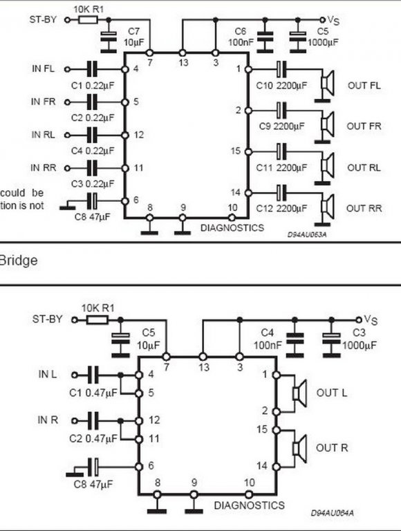 Van egy TDA7374-es ic-m, találtam hozzá kapcsolást is, de ez nekem elég alapnak , meg furcsának is tűnik még kezdő szemmel is . Az lenne a kérdésem, hogy hol és mivel kell kiegészíteni, hogy működjön. Előre is köszi a válaszokat.