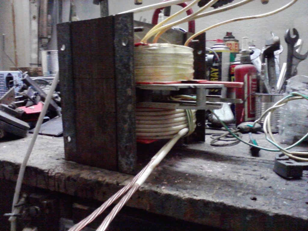 A titisztoros dolog még nincs megépítve, csak a trafó. Egyébként a tirisztoros dologgal nem pont elrontja az ember, amit az egyenirányítással nyerünk, azaz a folyamatos ív égést? Ha meg nagy kondik vannak, akkor a kondik lesznek nagyon terhelve, mert mondjuk egy negyed szinusz egy jó nagyot beletölt a kondiba, aztán a kondi energiájából ég az ív.