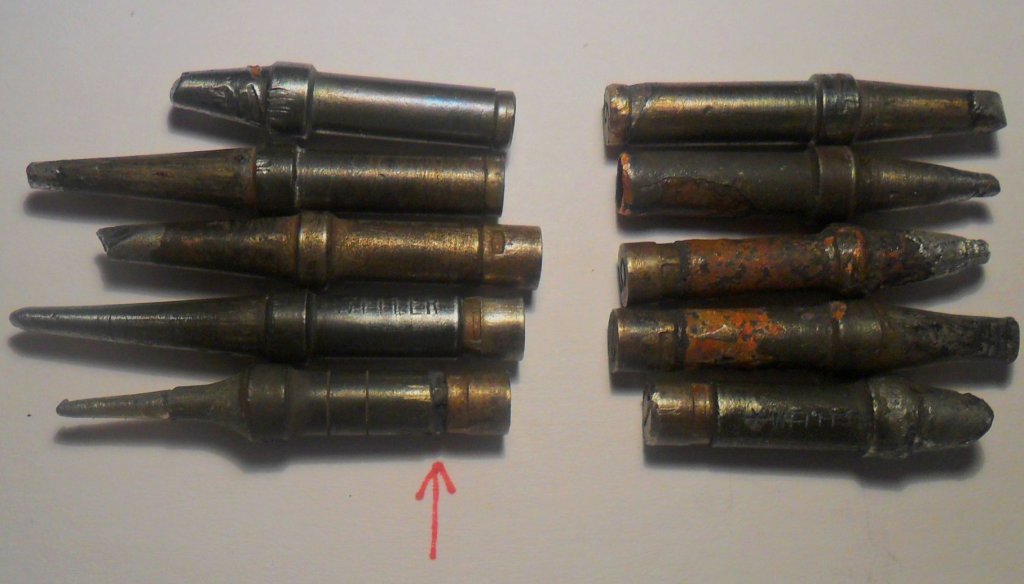 Én csak az elmúlt évtizedek Weller-rel kapcsolatos tapasztalataimat írtam le. Amúgy jelenleg nem vagyok képben Weller ügyben, csak egy használható,és viszonylag olcsó megoldást keresek. Szerintem már a Weller nem gyártja a régen "MAGNASTAT" néven jegyzett, a topik elején valaki által dicsért, kattogós forrasztót. Ez az elv már a 21. század elején idejétmúlt. Az enyémeket is átalakítottam annak idején elektronikusra, mert a kattogó érintkezője mindig beégett. Az említett hegyeim is abból az időből valók, és ahol a mágneses anyagot a végükre sajtolták, ott kezdenek el korrodálni, a sajtolás miatt ugyanis sérült a védőréteg. Az új fűtőbetétjük árán pedig vehetek egy tucat JLT-02 komplett forrasztóállomást. Szóval a hegyek belseje vörösréz volt, és ahol a védő bevonat sérült, ott alatta, láthatatlanul az egész belső elkorrodált, volt, amelyiket csak egy fogóval kellett összenyomni, csak egy vékony lemez maradt, belül üres lett, azt pontosan nem tudom, hány év használat után . Volt munkahelyemen ebből kifolyólag némelyik már 1 hónaposan kráteres volt. Most elővettem az annak idején selejtből visszamentett itthoni készletemet: 3 db eredeti Weller felirat, 2 db "Puskás, 3 db noname 3 db nem beazonosítható, annyira oxidált. Nagy különbség nincs köztük, na ezért ment el a bizalmam az "eredeti" Wellertől. De nem fogok reklamálni már sehol évtizedekkel ezelőtt kiselejtezett pákahegyek miatt.
