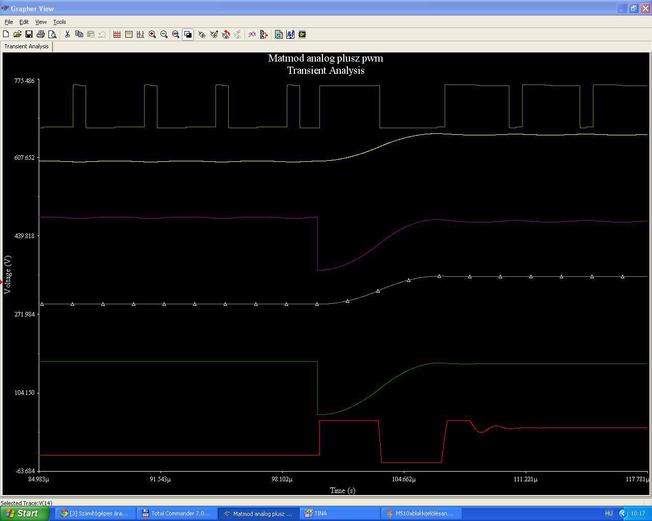 A 9.3-as egész jól megy, de hiányolom pl. a tranziens eredményekből azt a lehetőséget, hogy nyomom a bal gombot az egéren, erre megnyit egy ablakot és ha elengedem az egeret, akkor azt teljes képernyőre, vagy az aktuális ablak méretére nagyítja ki. Ezt nem tudja a program, vagy csak én nem tudom hogyan kell? Ez a Multisimben egy hihetetlenül kényelmes funkció. Ezt a 10-es verzió demójában sem találtam. Létezik, hogy ilyen egyszerű dolgot nem tud a TINA?