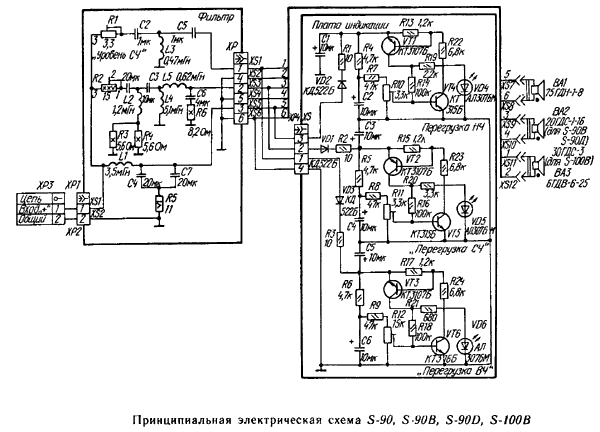 Időközben egy félig orosz barátom besegített nekem, s hogy ne maradjon megoldatlanul a kérdés küldött egy rajzot az S-90-es hangfal elektronikáról, emlékeim szerint ugyanez a kapcsolás van az S-30-asban is.