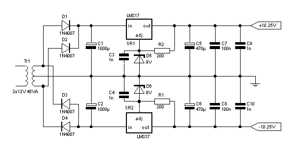 Kettős tápot egy kondoval szűröm? Ha elolvasod a kommentárt is nem csak a rajzot nézed, ott van hogy jön majd még 2x 10000 µF a végére puffernek, vagy ha elég kevesebb akkor annyi, amúgy meg a középső ág nem lesz kihasználva, csak a teszt erejéig.. A rajz nem rossz, megépítettem, és műkszik, a fent leírt hibajelenségeken túl.. Üdv! Tényleg nem olvastam végig Bocs ! Bár én nem tapasztalttam komoly fesz esést Igaz nem tettem bele szűrő induktivitást a szekunderen. Ha terheled a trafót pedig csökken a feszültségesés a stabilizátoron . Na minegy csak egy ötlet a zavar fesz ellen .
