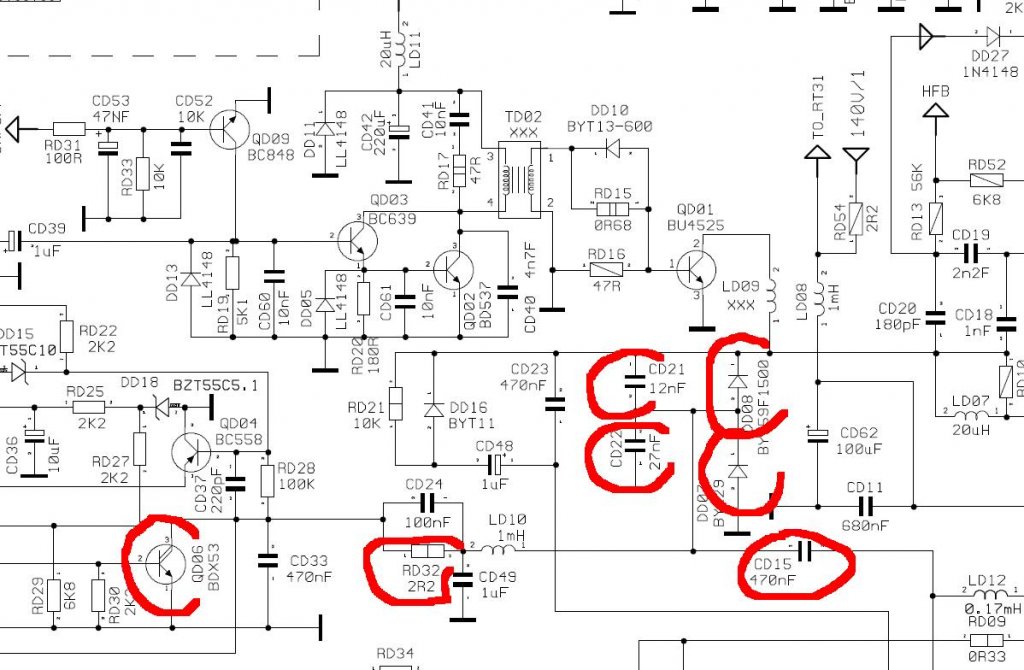 A diódákat és kondenzátorokat is mérd ki mielőtt ellenállást cserélsz.