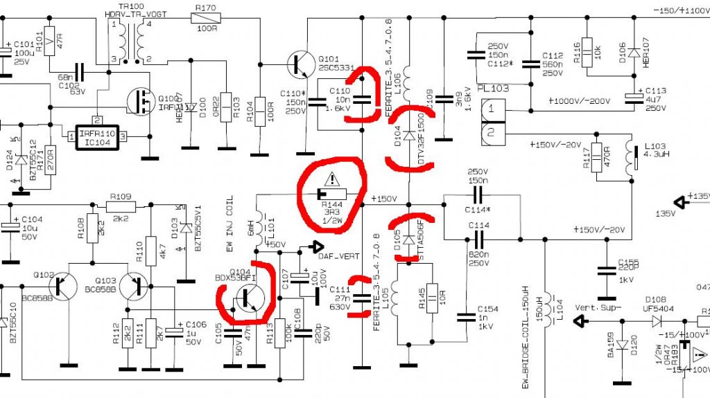A diódákat és kondenzátorokat is mérd ki mielőtt ellenállást cserélsz.
