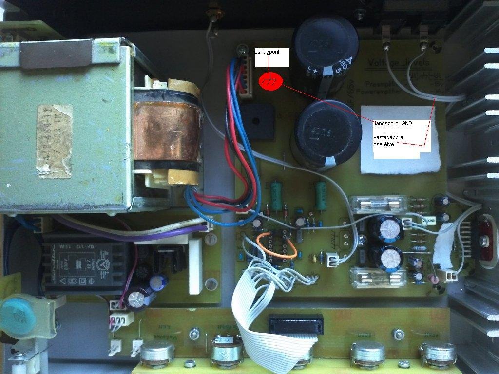Ezt már közben javítottam és át van kötve a föld vezeték a pufferkondenzátorok mellé, a képen lévő vezetékest is lecseréltem vastagabbra.