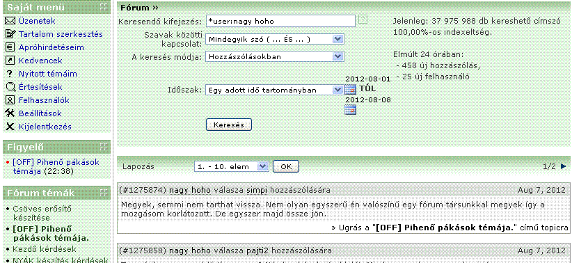 Arra van lehetőség, hogy a saját hsz.-met megnézzem egy adott időponttól?