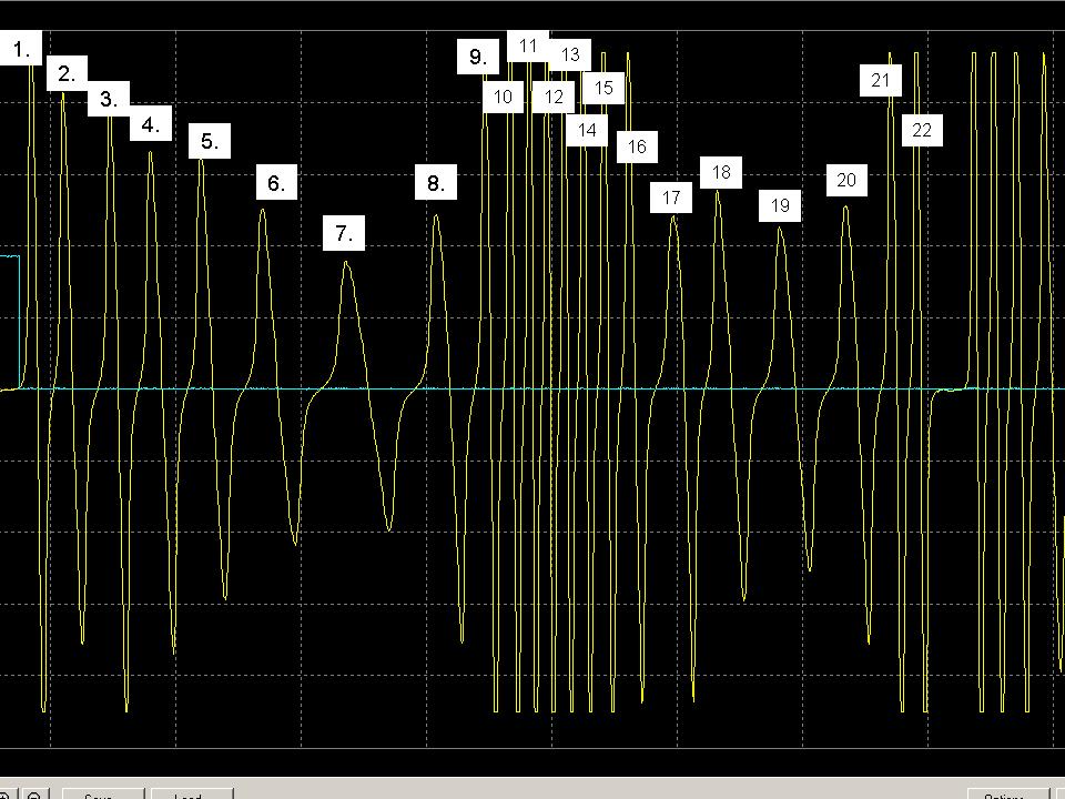 Amit látok az az, hogy a kimaradt 2 fognál nem olyan meredek a jel emelkedése.