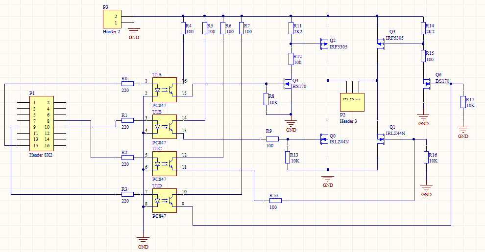 Csak egy megjegyzés.. - Ez a rajz nem működik. Az opto kollektorát a tápra kell tenni, és az emitterek mennek a Gate-be. - A Led-eket nem lehet közvetlenül a proci kimenetére kötni, áramkorlátozó soros ellenállás kell. - Valamint érdemes megnézni az adatlap 12 és 13. ábráját, milyen terhelő-ellenállások mellett, milyen válasz időket produkál az opto, főleg ha PWM is van/lesz.. üdv! proli007
