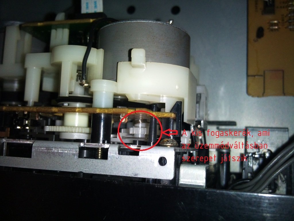 Szia: Szerintem szét kell szedni a mechanikát. középső (reel)) motor nyitja-csukja az ajtót, és a szélső (asyst) motor húzza fel a fejet és kapcsolja a mechanikai üzemmódokat, egy szíjmeghajtású fogaskerekes áttételen keresztül egy un. programkerékkel. lehet hogy ez van megkopva. Ehhez a pprogram kerékhez kapcsolódik (mechanikán belül) még egy enkóder (logikai forgókapcsoló) és estleg ez is okozhatja a fejmozgatási hibát. De nem a főmotor mozgatja lendkerék segítségével fejeket. A zajosságnak lehet oka az ajtó nyitó fogaskerekek (3db van benne!) sérülése. Üdv István