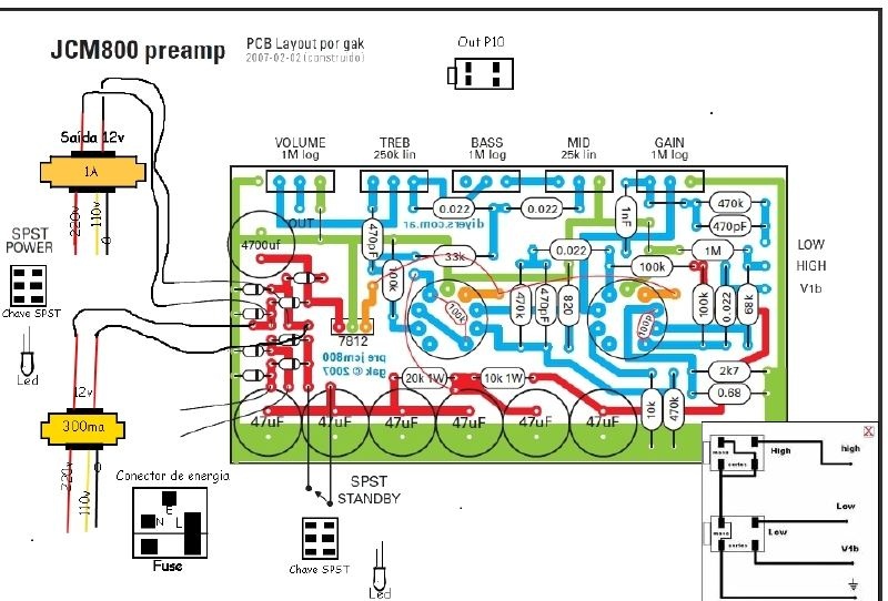Közzéteszem mindenem, ami a JCM 800-ról van. 6n2p-vel csináltam, a fűtést sorba kötöttem. Másik megoldás a 7812 cseréje 7806-re.