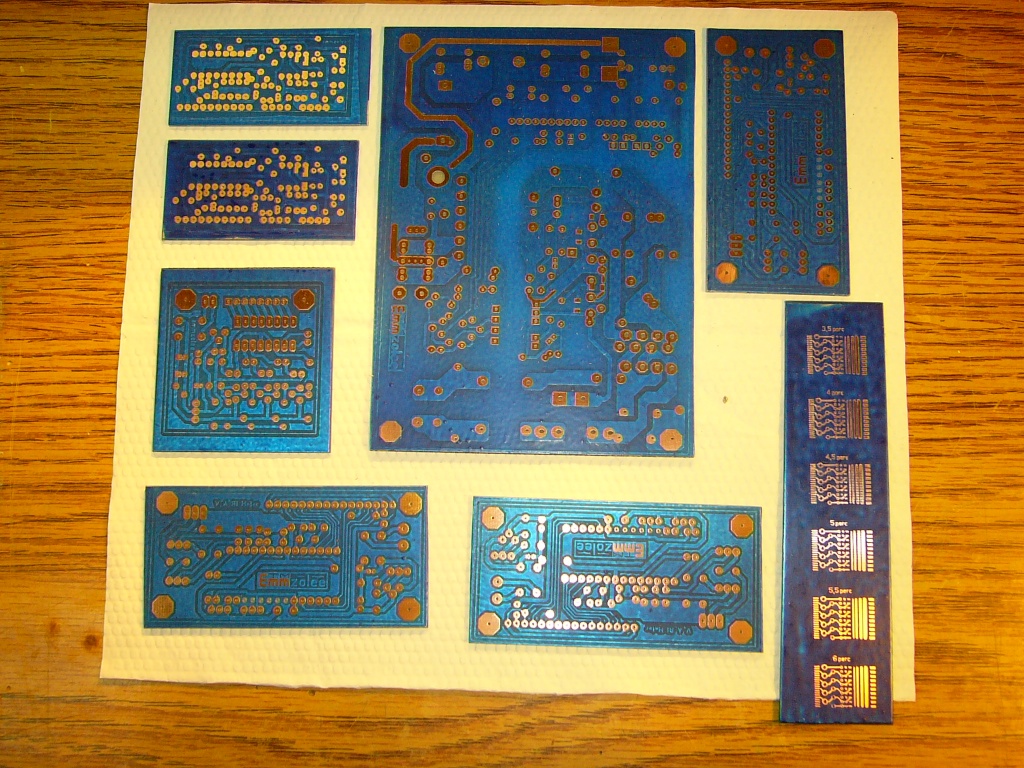 Én viszont a német leírás alapján csináltam, és benne van a kiégetés. Az viszont tény, hogy a fényérzékeny festék minőségét nem éri el. Ezért cserébe nem macerás. Hobbi célokra vagy éppen prototípus előállítására viszont kifejezetten előnyös. Még valami. Az általam ismert leírás ír még valamit, amit nem említettetek. Levilágítás után mielőtt menne az előhívóba, legalább 20 percet kell pihentetni. Azért, mert akkor megy végbe a tökéletes "polimerizálódási" folyamat. (nem én találtam ki). Az előhívás után én ca. 40 percre teszem UV alá, úgy hogy 14db 18W-s UV cső világítja még, aztán megy a sütőbe.