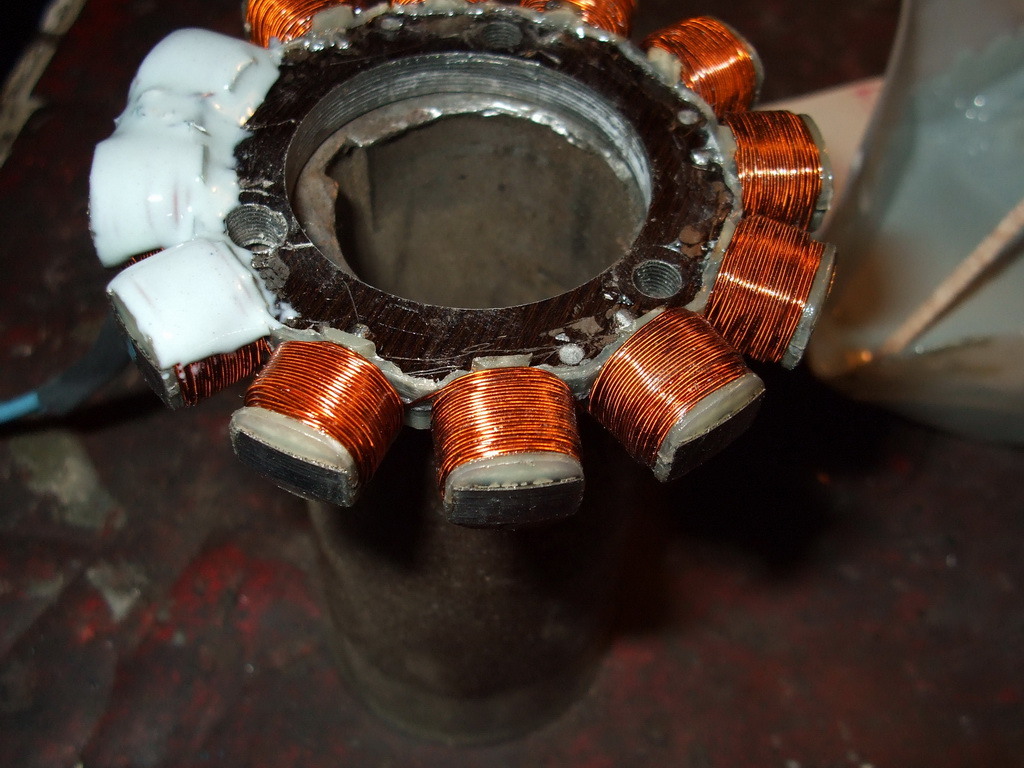 Az újra tekert állórészen 18,5Ohm-ot mértem, a jeladó tekercsen meg 158Ohm-ot, meg most biztosan nem testzárlatos, 500V-ig tesztelve lett, szigetelésszint vizsgálóval, és minden ok volt