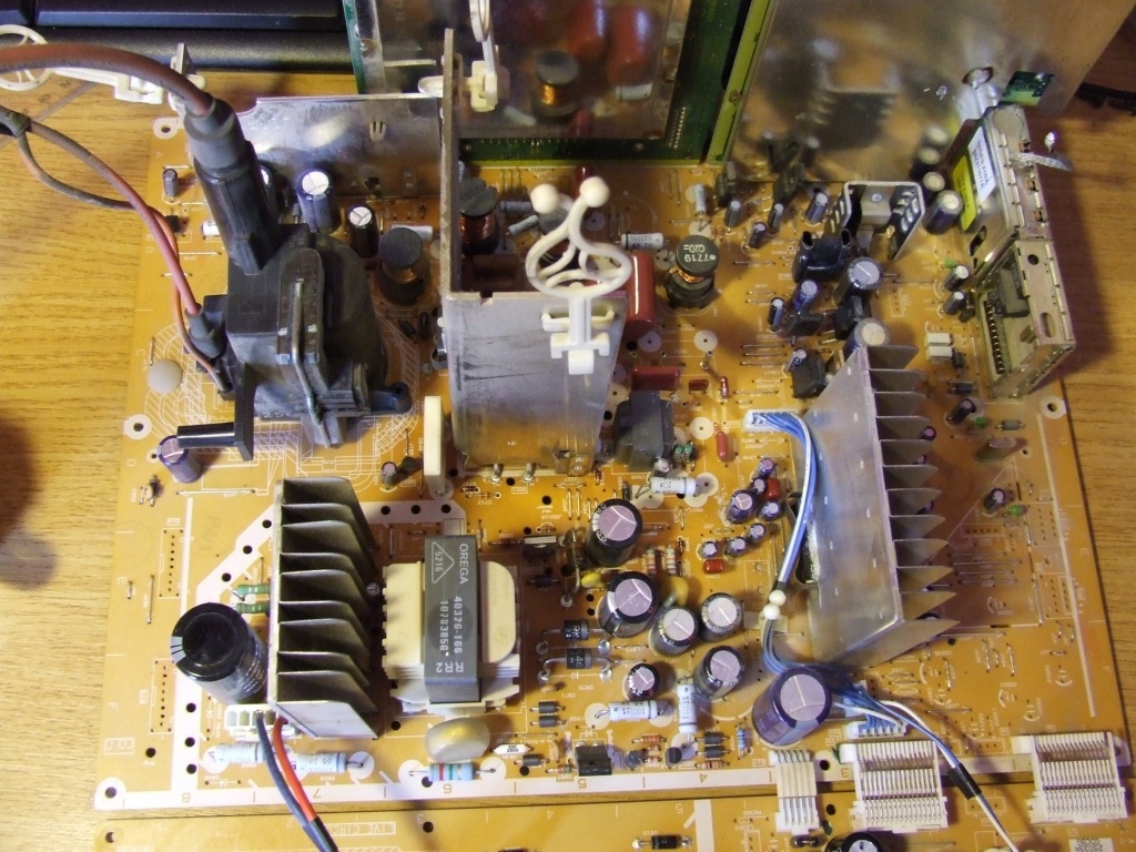 9 éves Panasonic TX29PS10p TV-nk hibája, hogy bekapcsolás után kb. 5 másodperccel visszaáll standby módba. Az 5 másodperc alatt sincs kép. A 9 év alatt egyszer sem volt kihúzva a konnektorból. A hiba az után jött elő, hogy el kellett pakolni a helyéről, és ez miatt ki kellett húzni. A táp panelon kicseréltem a jelölt elkokat. Nem változott semmi. Diódákat mértem nem tűnt rossznak egyik sem. Az 5 másodpercben van feszültség a G4 kimeneti ponto és a graetz váltó része is kap 220V-ot. Ez után ezeken a pontokon már nincs feszültség. Olyan mintha a táp jó lenne, csak a másik panelon van valami gebasz ami miatt lekapcsol a tápegység rész. Sajnos magamtól nem értek annyira a TV szereléshez, hogy ez után kiderítsem a hibát, de ha lenne valakinek javaslata, szívesen fogadom. Beszereztem a kapcsolási rajzot is. A táp a G jelű panelon van. Feltöltöttem pár képet az áramkörökről. Ránézésre szinte semmilyen fizikai eltérés nem látszik. Egyedül a D895 diódánál (fehér kerettel jelöltem) van egy kis nyák barnulás, de a dióda jó. Előre is köszi a segítséget. Üdv: Johny A hozzászólás módosítva: Szept 22, 2012
