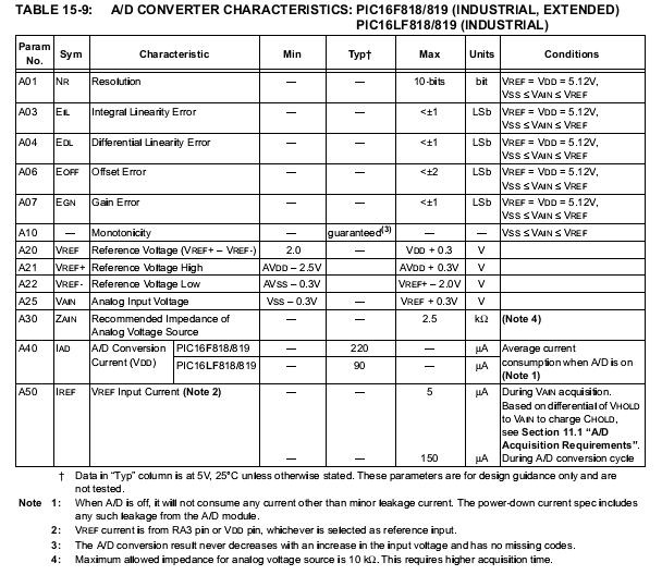 Ezt a 0,6 V-os értéket én nem láttam az adatlapban. Amit találtam azt a mellékletekhez feltettem. Ez alapján 5V kontroller táp esetén a (Vref+) -nak legalább 2,5V- nak kell lennie, úgy, hogy a (Vref+) - (Vref- ) különbség legalább 2V legyen.