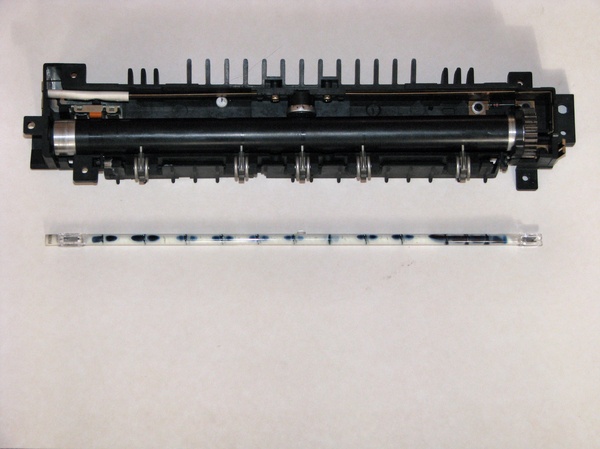 Ez a régi nyomtatókban volt divat, ma már csak fólia henger van a fixálóban - ez az egység égeti bele a papírba a festéket. A régi bevonatos alu henger sokat bír, de igen energiapocsékoló a felmelegítése, az új nyomtatókban a fólia gyorsan melegszik, ellenben hajlamos szakadni minden kis szirszartól. A teljesítmény és a méret alapján érdemes körbenézni más gyártók szervizében is, semmi varázslat nincs a halogén vonalizzóban. Rövidebb nem jó, mert a papír szélén nem fogja kellően felmelegíteni a festékport, és csak szétmaszatolódik mindentől.