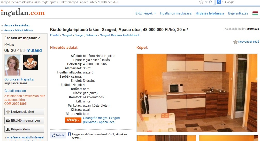 Megnéztem, az adott portálon Szegeden 12 db 10.000.000 Ft/hó feletti élő albérlethírdetés van jelenleg 9 hírdetőtől. legdrágáb 100.000.000 Ft/hó. Több ember téveszt s senki se veszi észre, ha észreveszi nem javítja.