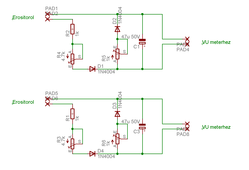 Még 1 kérdésem lenne a rajzal kapcsolatba,az R3,4,5,6 ellenállás egy potméterszerűség lenne?És ki lehet hagyni őket? Mert én a kivezérlésjelzőre raktam kis potikat amivel az érzékenységet be lehet állítani mert alapból ki volt akadva.