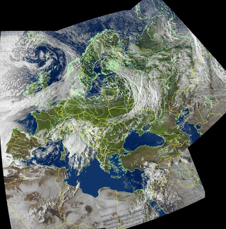 Szep. Viszont egyet nem ertek a kep osszerakasban: Ha egy muhold kepeit rakod ossze eleg sok ido eltelik a vetelek kozott, es eltolodnak a felhok is. Kerdes , mennyire.
