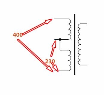Az egyik vezeték a közös, a másik 230 V, a harmadik 400 V. Kiválaszthatod, hogy milyen feszültségre kötöd a primer tekercset. Az viszont kizárt dolog, hogy három fázisról menne a trafó.