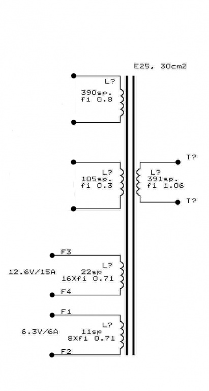 Szóval neked egy többleágazásos szekunder tekerccsel rendelkező trafó kell. Szerintem nézz körül otthon, hogy van-e valami olyan hálózati transzformátor (pl. régi már nem működő mobilnak a töltője, régi videó, amit nem használtok, stb...) ami nincsen műgyantával impregnálva, tehát szét tudod szedni, és át tudod tekercselni. Ha találtál ilyen transzformátort, akkor csak annyi lessz a dolgod, hogy az eredeti szekunder tekercset szépen letekered, lehetőleg vigyázva a tekercselőhuzalra, mert akkor azt újból fel fogod tudni használni. Az eredeti primer tekercs több szempontból is jó, egyrészt nem kell kínlódni a vékony huzallal, másrészt biztosan nem gerjeszted túl a vasat, szóval nem lessz rezsó is egyben