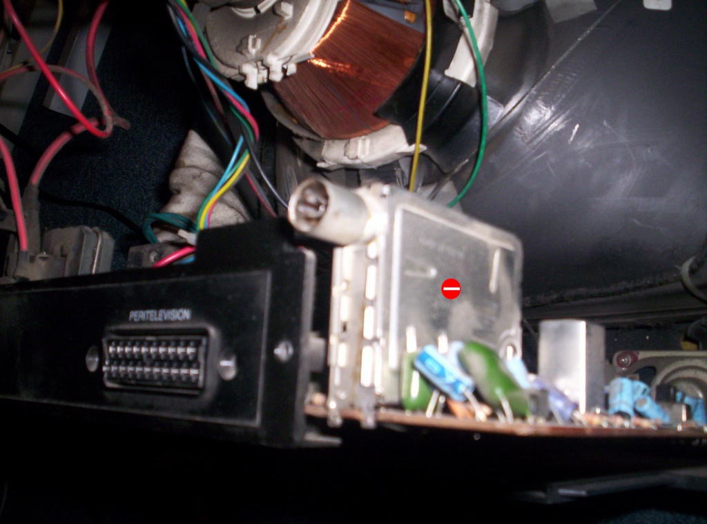 Azzal kezdődött, hogy egy vékony vízszintes csíkba ugrott össze a kép. Na mondom, - Ki ment a sorvégtranyó. Mire ki akartam kapcsolni csattant valami (de nem tudom mi mert semmi nem szált el benne), és azután a mellékletben szereplő képet adja. A sorvégtarnyó jó, már csak a sorkimenőre tudok gondolni (nem látszik rajta semmi, hogy az csattant volna el). Kicseréltem benne a PTK-t, mert előtte már vacakolt a kép. Kicseréltem benne a puffer kondit. Hang az van.