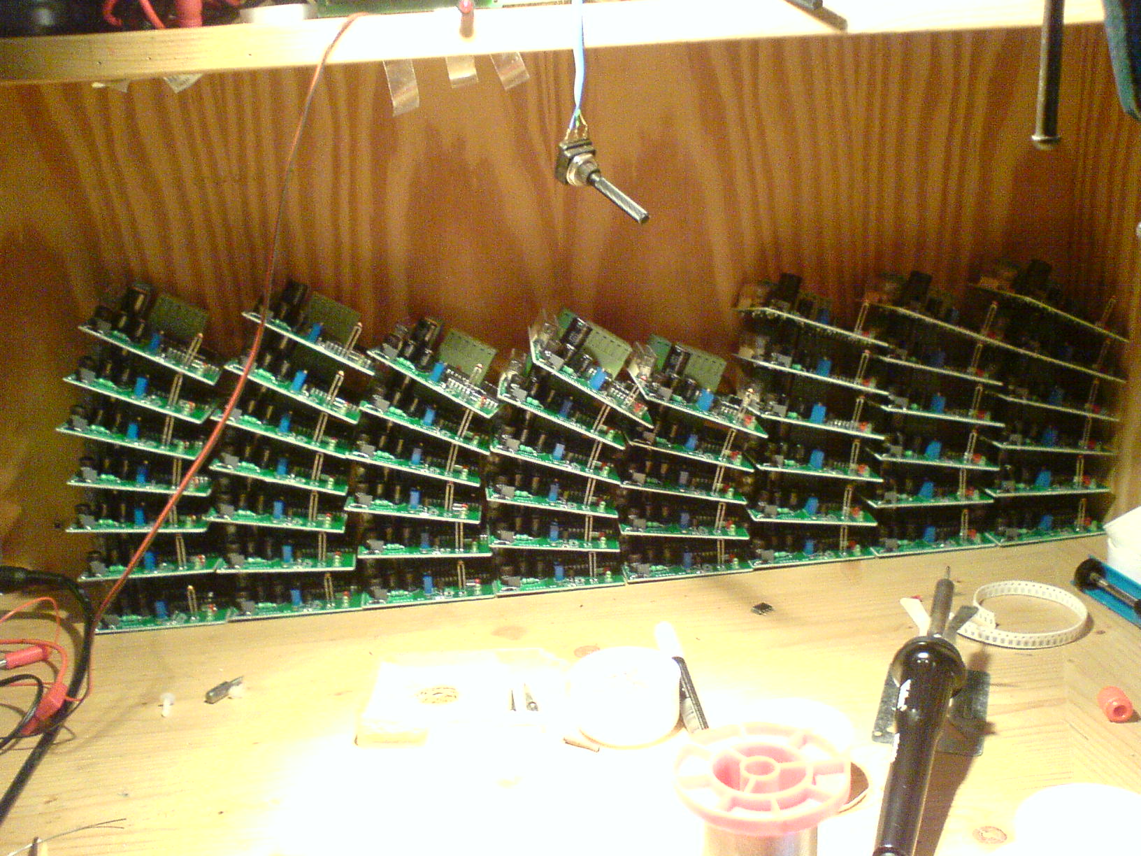 Ismerős helyzet Nálunk, néha a földön is, ilyen és ennél nagyobb halomban állnak az áramkörök. A baj ott kezdődik, hogy néhány nyák tipuson pici aksi is van és ezeket mikor egymásra helyezzük, szigetelő nélkül (véletlenül), akkor általában szép fény és füst effekteket tapasztalunk, a főnök arcán meg valami furcsa vigyort. Bocs az offert.