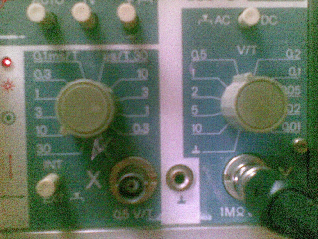Sajnos, a szkópodnak túl kicsi a legnagyobb ideje is. Amit látni, 30 ms. Alatta van Int-Ext átkapcsoló. Ez kapcsolja belső szinkronról külsőre. Sokra nem mész vele. Gyanítom, hogy jelenleg is külsőn van. Próbálkozz a hangkártyás szkóp megoldásokkal! Ott tetszőleges időkkel is lehet dolgozni. Végeredményben elindítasz egy hangfelvételt és a hullámalakot visszanézed.