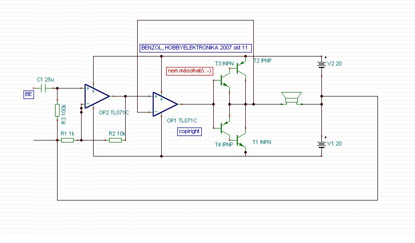 ), a rezgési frekit a visszacsatolo kör-ben korlátozza, és nem a kimeneten. Nem csipog be annyira nagyobb kivezérlésnél.