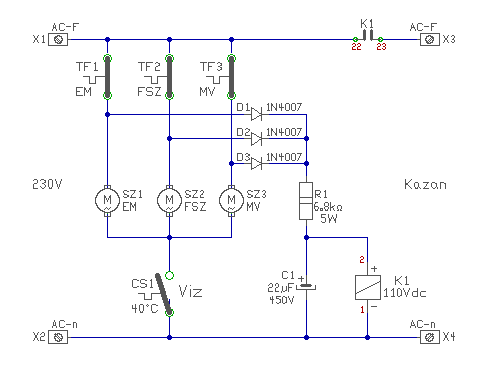 Valami ilyesmire gondolsz? Ha bármelyik termosztát bekapcsol, a kazán elindul. De a megfelelő szivattyú csak akkor jár, ha a víz hőmérséklete elérte a 40 fokot. (Cs1 egy csőtermosztát, közvetlen a kazán előremenő oldalán.)
