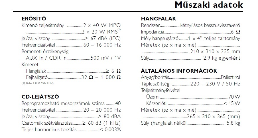 Sziasztok, a következő lenne a problémám, van egy Philips FW C-330-as mini hifim, melynek a paraméterei a mellékelt képen láthatók...