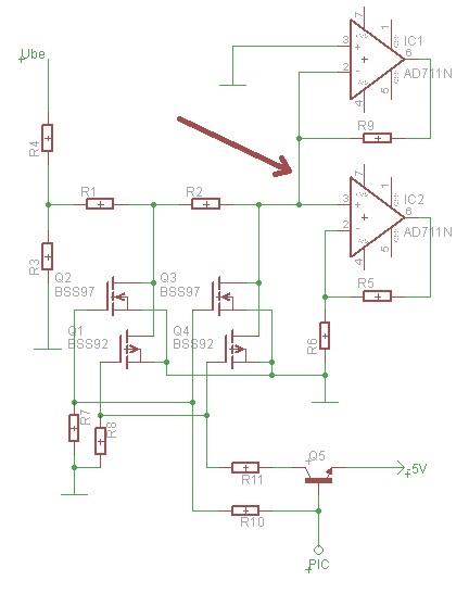 Sajnos ezek a kis offszetű erősítők sem közelítik meg eléggé a GND-t, vagyis +-tápfesz kell, vagy valamilyen egyéb megoldás, pl. a mérendő jelet eltolni +1mV-al. Lenne erre valamilyen ötleted, ami elegendő pontosságot biztosítana? Talán ha lenne egy 1-2mV-os referenciafeszültség forrás ami a mérőkör virtuális GND-je lenne. (Hogyha szimmetrikus tápfesz lenne ebben az esetben, akkor 0V bemenőnél a kimenet az eltolt feszültséghez közelítene, vagy a +-tápfesz közepéhez?) Közben eszembe is jutott talán a megoldás: Az 1mV-ot ellenállásosztóval állítanánk elő a referenciafeszültségből a körülbelüli értéket, ahogy az ellenállások sikerültek, majd első bekapcsolásnál amikor nincs semmi rákötve a műszerre a PIC lefuttatna egy méréssorozatot ami által megkapja a felerősített eltolt feszültségek értékét, úgy mint a panelmérődben az offszetmérés és ezt eltárolná és ezentúl tudná mennyivel van eltolva a feszültség. Persze előtte az erősítés mértékét be kellene állítgatni. Továbbgondolva: a referenciához külön erősítő lenne és azon keresztül mérné meg a PIC a pontos értékét. De még mindig probléma a kis terhelhetőség (1000 feletti osztásarány...). Vagy a másik megoldás, hogy 100mA alatt nem lehetne mérni, de ez rosszul hangzik.