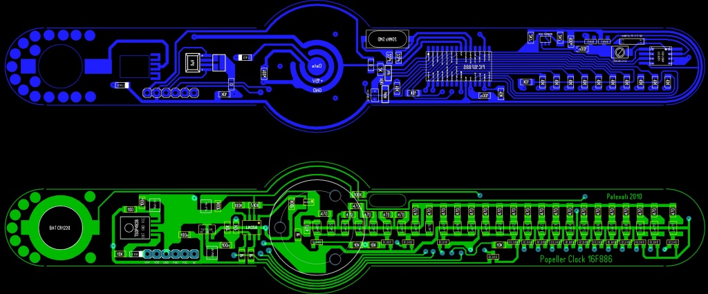 Igen csak csend lett itt mostanság! Vajon kezd kimerülni a propeller óra iránt az érdeklődés? Lassan nekilátok átalakítani a rotort. Első nekifutásból nem tervezem a PIC cseréjét Tehát marad a 16F886 és megszüntetem az RC5 vételt, jelenleg nincsen jó távirányítóm sem ehhez a rotorhoz. A nyákot szépen átkötögetem a kapcsolási rajz alapján (remélem nem hibázom el) és szükségem lenne a programra amit be kell égetni a bázisba illetve a rotorba vagy az még nem publikus? |