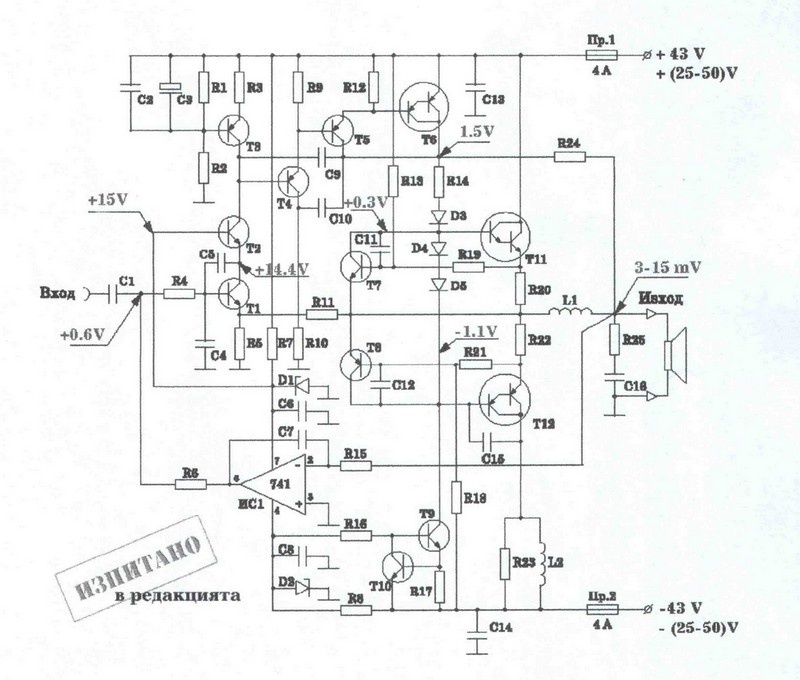 Na oké, értem a lényeget, én maradnék akkor annál a megoldásnál hogy négy pár vegtranyót tennék bele (MJ15003-ast), és az A-osztály fokozat nagyobb arámon járatása maradna megoldásként, és akkor csökkentem a 4 darab 1K ellenállásokat 910ohm-820ohm-ra, és ezekkel az ellenállásokkal fogom majd tudni gondolom be állítani azt a 100mA-ert. Egy kérdés hol fogom tudni merni azt a 100mA-ert?, be tudnád nekem jelölni a rajzon hogy hol mérjem?. Ezt akkor vegyük úgy hogy meg oldódott, de még ott van nekünk a T3-as és T4-es, azokkal mi legyen, hogy tudnánk ki silabizálni hogy ne korlátozzon még időnek élőt?. Vagy iktassam ki teljesen a rajzról mondjuk így ahogy a rajzon szerepel?.