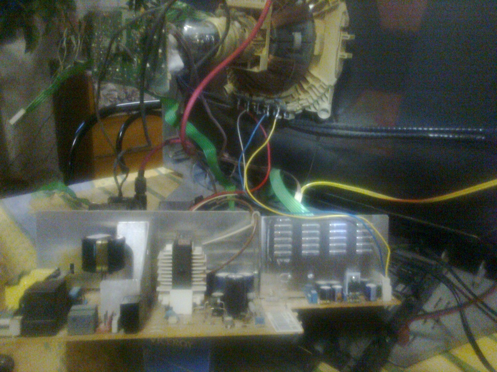 De megtaláltam mi pukkant el, így addig nem tudok vele foglalkozni míg nem veszek egy IC-t bele. Ez pedig egy TDA... IC, azért a ... mert elpukkant és így nem lehet látni a számát.