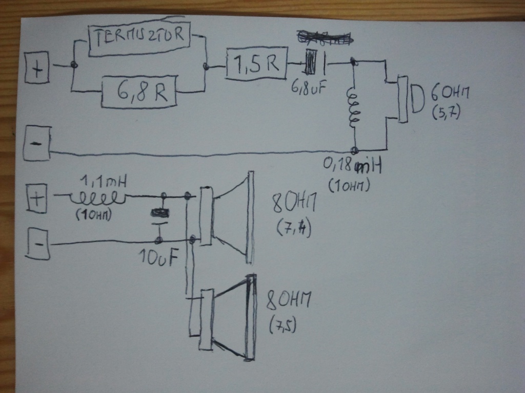 Újra a segítségeteket szeretném kérni ![]() Megnéztem alaposabban a hangváltót és készítettem róla rajzot. Lenne pár kérdésem ezzel kapcsolatban. - Hol vág ez a hangváltó? Próbáltam kalkulátorokat keresni, de nem sikerült olyat találni ahol a vágási frekvenciát lehet kiszámolni tekercs és kondi értékekből. Ha tudtok ilyet kérlek linkeljétek. - Az új kondik értékben nem teljesen fedik a hangváltón lévő értékeket. Ha picit alacsonyabb (6.5uF) az baj lehet e? Habár gondolom nem igazán számít, mert amiket kiszedtem belőle azok értékei iszonyatosan eltértek a hivatalos értéktől. 10 és 13,5 mikrósak voltak - Kihagyható e ez a termisztoros rész ami benne van? Korábban lamalas írta hogy felesleges. Lehet érdemes lenne megszabadulni tőle? - Ha kiszedném a 6,5-ös ellenállással együtt és áthidalnám akkor ez mennyire befolyásolná a váltót? Csak a 1,5 Ohmos ellenállást kéne változtatni vagy még arra sincs szükség? Csatolom a képeket és előre is köszönöm szépen a segítséget ![]() A képekre odaírtam a hivatalos érték mellé zárójelbe a hangsugárzók ellenállását és a tekercsek ellenállását amit mértem. A hozzászólás módosítva: Okt 29, 2012